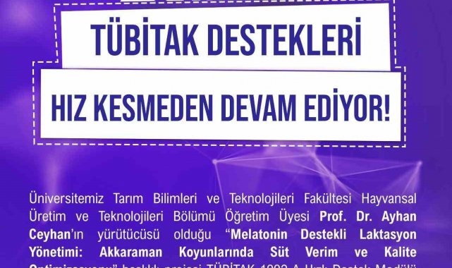 Niğde Ömer Halisdemir Üniversitesi (NÖHÜ) Tarım Bilimleri ve Teknolojileri Fakültesi Hayvansal Üretim ve Teknolojileri Bölümü Öğretim Üyesi Prof. Dr. Ayhan Ceyhan'ın yürütücüsü olduğu 'Melatonin Destekli Laktasyon Yönetimi: Akkaraman Koyunlarında Süt Verim ve Kalite Optimizasyonu' başlıklı proje, TÜBİTAK 1002-A Hızlı Destek Modülü kapsamında desteklenmeye hak kazandı.