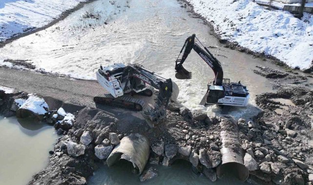 İl Özel İdaresi Genel Sekreteri Nuri Çelik ile Yol ve Ulaşım Hizmetleri Müdürü Savaş Tekin köprü yapım çalışmasını inceleyerek görev yapan ekiplerden çalışmaların son durumu hakkında bilgi aldı. Geçici geçişin güvenli ve kontrollü bir şekilde sağlanabilmesi amacıyla yürütülen çalışmalarda; 9 metre boyunda ve 3 metre çapında boru ile 2,4 metre çapında ve 5 metre boyunda 2 adet boru kullanılarak uygulama gerçekleştiriliyor. Yapılan çalışmalarla birlikte, ulaşımın kesintisiz devam etmesi ve vatandaşların günlük yaşamlarının olumsuz etkilenmemesi hedefleniyor.