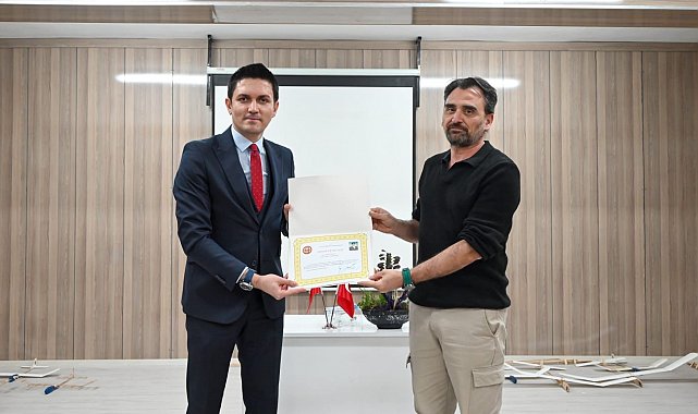 Ziyaretin sonunda Kaymakam Evren Çakır, kursa sunduğu katkılardan dolayı THK Model Uçak Eğitmeni Aydın Aydeniz'e teşekkür belgesi takdim etti.