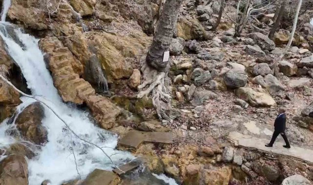 Adana'nın Saimbeyli ilçesinde bulunan Obruk Şelalesi son dönemde etkili olan kar ve yağmur yağışlarının ardından çağlamaya başladı.