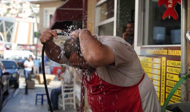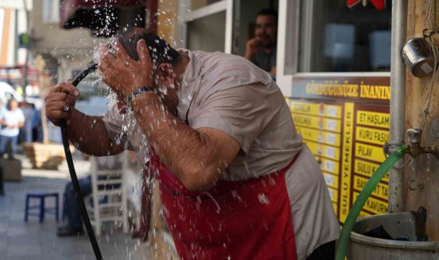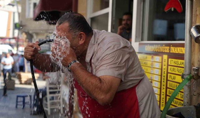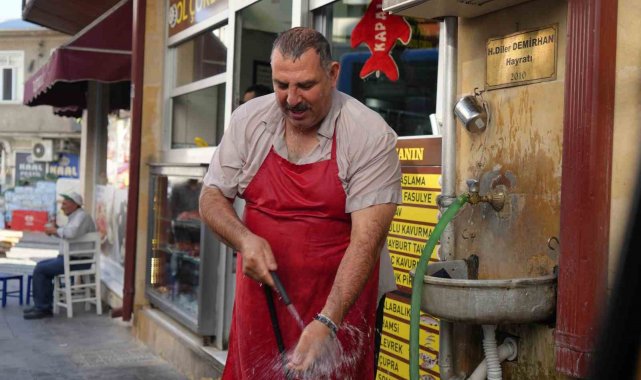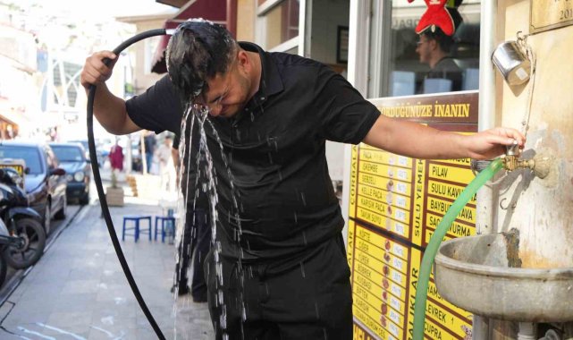 Kent merkezinde lokanta işletmeciliği yapan Osman Demirhan, ocak başında yüksek sıcaklık altında çalışmakta zorlanınca dükkânının önüne yaptırdıkları hayrat çeşmesine hortum bağlayıp, kendini yıkamaya başladı. Gün içinde fırsat buldukça kendini yıkayan Demirhan, bu şekilde serinlediğini dile getirdi.