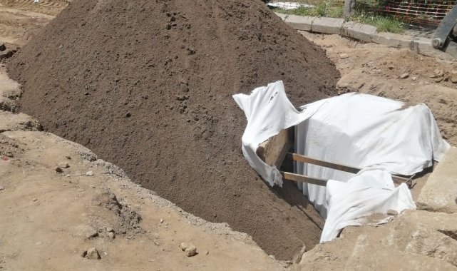 Oda mezar kontrollü bir şekilde kapatıldı, yol çalışmaları tekrar başladı