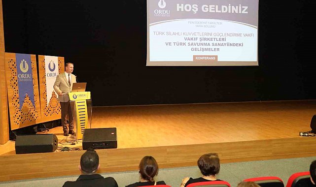 Ordu Üniversitesi morfoloji binasında, Türkiye'nin savunma sanayii stratejileri ve yerli teknolojinin ele alındığı "Türk Silahlı Kuvvetlerinin Güçlendirme Vakfı, Vakıf Şirketleri ve Türk Savunma Sanayindeki Gelişmeler" başlıklı konferans gerçekleştirildi. Fen Edebiyat Fakültesi Tarih Bölümü tarafından düzenlenen konferansa konuşmacı olarak katılan Türk Silahlı Kuvvetlerini Güçlendirme Vakfı (TSKGV) Genel Müdür Yardımcısı Emekli Tuğgeneral Erhan Sipahioğlu, Türkiye'nin coğrafi konumu, modern savaşlardan çıkarılan dersler ve yerli teknoloji konusunda dinleyicileri bilgilendirdi.