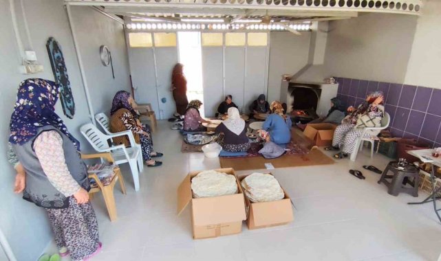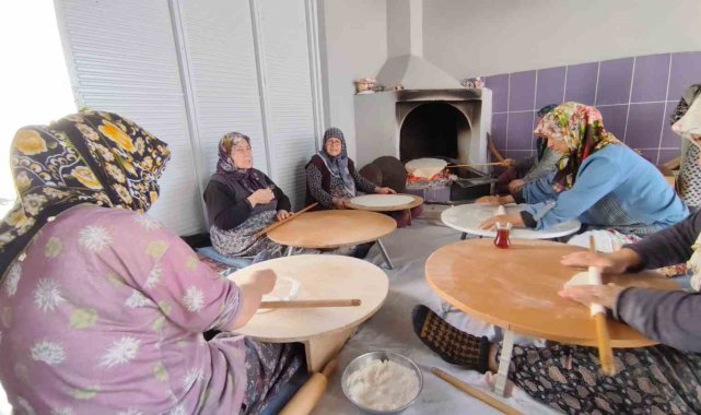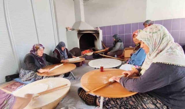 Geceden 25 kilogram un ile hamuru hazırladıklarını anlatan Nebahat Sabancı ise, "Sabah bahçede bir araya geliyoruz ve aramızda iş bölümünü yapıp hazırlanan hamurdan parçalara ayırarak yufkaları açmaya başlıyoruz. Hepimiz aynı anda açamıyoruz, aynı anda 6-7 kişi yufka açıyor 1 kişi de odun ateşinde hazırlanan yufkaları pişiriyor. Bir kişi de kutulara istif ediyor. Yorulan olursa kenarda bekleyen ile yer değiştiriyoruz. Kenarda bekleyenler aynı zamanda çay, kahve ikramları da hazırlama görevini üstlenmiş oluyor" diye konuştu.