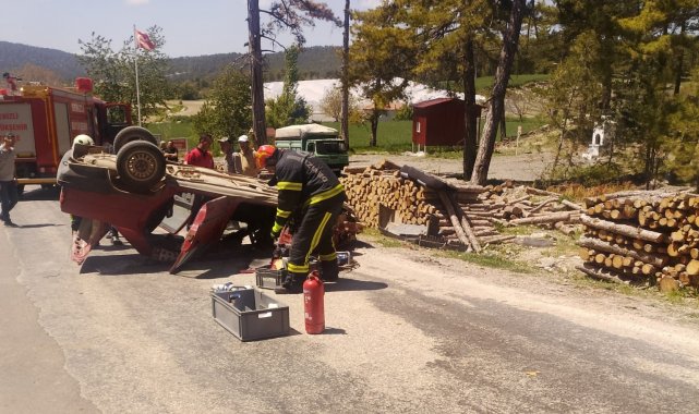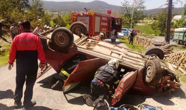 Denizli'nin Çameli ilçesinde orman sahasında yapılan kesimin ardından yol kenarına yapılan odun sterlerine çarpan otomobil takla attı. Kazda araçta sıkışarak yaralı sürücü, itfaiye ekipleri tarafından kurtarıldı.