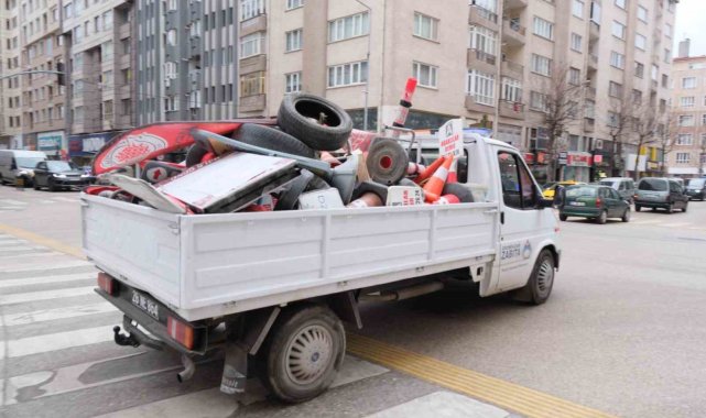 Odunpazarı Belediyesi Zabıta Müdürlüğü ekipleri gerçekleştirdiği çalışmalar kapsamında İbrahim Karaoğlanoğlu Caddesi, İnal, Sanayi ve Şentürk sokak üzerinde bulunan yaya geçişini engelleyen duba, tabela, reklam panosu gibi malzemeleri topladı. Zabıta Müdürlüğü ekipleri kaldırım ve yol işgallerine karşı yürütülen denetimlerde, esnaflara uyarılarda bulunulurken, kamuya ait alanların yayaların kullanımına açık olması gerektiğini vurguladı. Vatandaşların güvenliği ve kent estetiğinin korunması amacıyla bu tür çalışmaların düzenli olarak devam edeceğini belirten Zabıta Müdürlüğü yetkilileri, kaldırım ve yol işgalleriyle ilgili ihbarların titizlikle değerlendirildiğini, herkesin yayaların güvenliği konusunda duyarlı olması gerektiğini ifade etti.