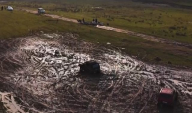 Off-road grubunun çamur içindeki dansı havadan görüntülendi