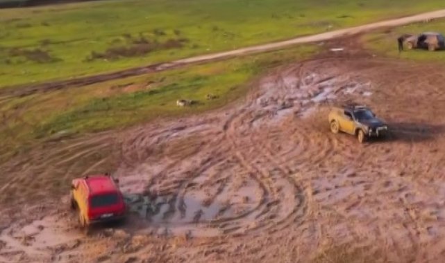 Bursa'da güzel havayı fırsat bilen off-road grubu, doğanın tadını çıkardı. Çamur içinde adeta dans eden 4x4 araçlar havadan görüntülendi.