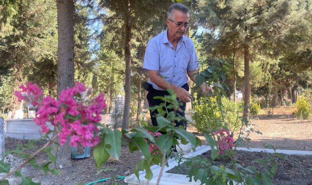 Yamanlı Mahalle Muhtarı Necati Eren, Hüseyin öğretmenin, oğlu vefat ettikten sonra adeta kendini mezarlığa adadığını sadece çocuğunun değil tüm mezarlığa özen gösterdiğini anlattı.