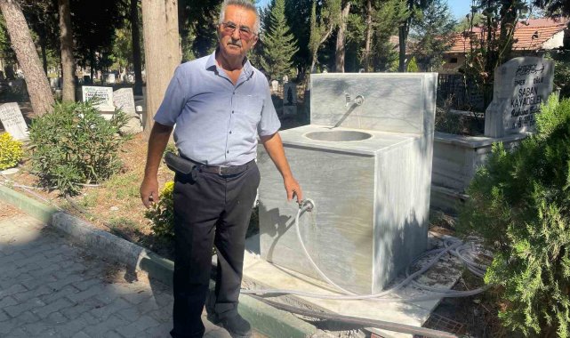 Mezarlığa gelenler su içsin, abdest alsın diye mermerden sebil yaptırdıklarını anlatan Güven, suyun boşa akmadığını fidanların, çiçeklerin sulamasında kullanıldığını söyledi.