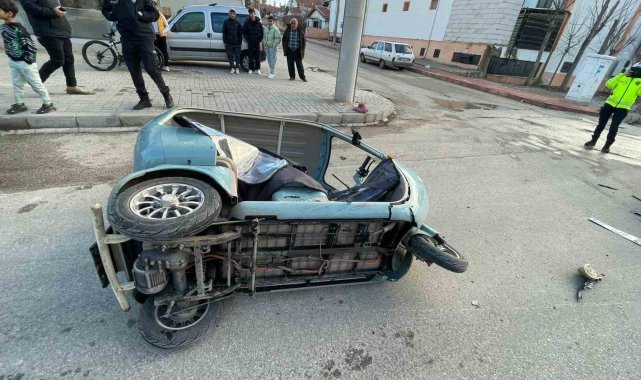 Kaza anı bir iş yerinin güvenlik kamerasına yansıdı. Görüntülerde otomobille çarpışan üç tekerlekli elektrikli bisikletin devrildiği anlar görülüyor. Polisin kaza yerindeki incelemesinin ardından araçlar yoldan kaldırıldı.