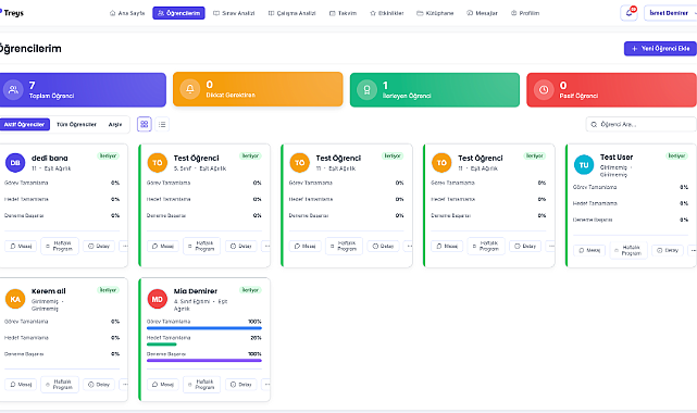 EdTech’in bir markası olan Treys, YKS hazırlık sürecini kökten değiştirmeyi hedefleyen yeni nesil öğrenci takip sistemi ile resmi olarak yayın hayatına başladı. Öğrenci, mentor ve veli arasındaki iletişimi tek bir dijital platformda birleştiren Treys, kişiselleştirilmiş eğitim ve verimli takip arayanlar için bütünsel bir çözüm sunuyor.Eğitimde dijitalleşmenin hız kazandığı bu dönemde, özellikle Yükseköğretim Kurumları Sınavı (YKS) gibi rekabetin yoğun olduğu maratonlarda öğrencilerin ve mentorların en çok ihtiyaç duyduğu şey, etkili bir planlama ve takip sistemidir. Treys, tam da bu ihtiyaca yönelik geliştirdiği modern arayüzü ve kullanıcı dostu araçlarıyla öne çıkıyor.