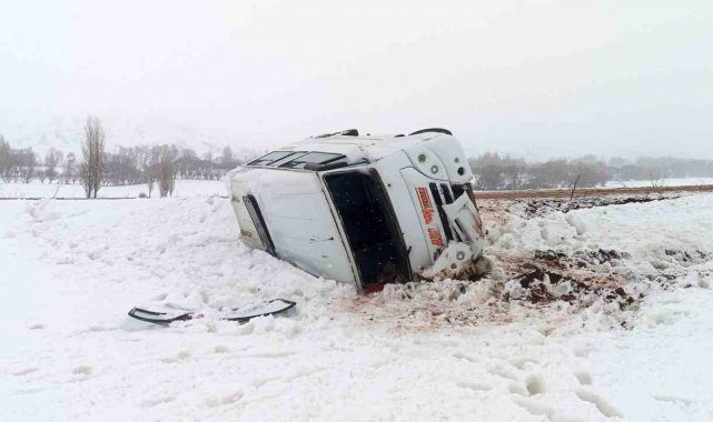 Sivas'ta öğrenci servisi kar ve yoldaki buzlanma nedeniyle şarampole devrildi. Kazada sürücü ve 13 öğrenci yaralandı.