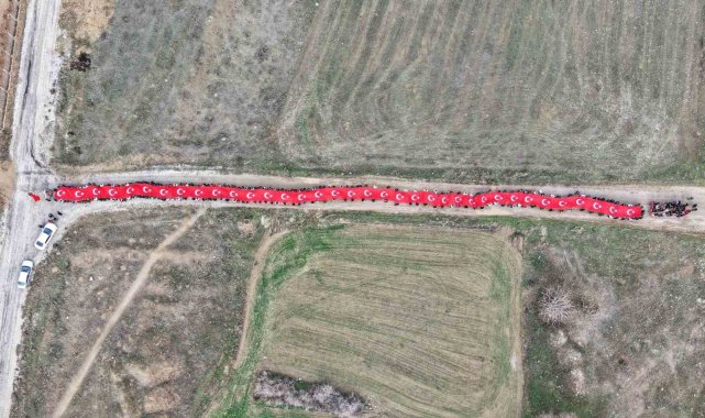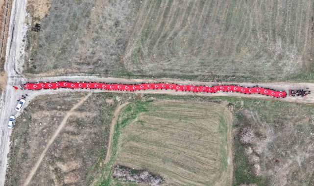 Öğrenciler, 150 metrelik dev Türk bayrağıyla okula giriş yaptı