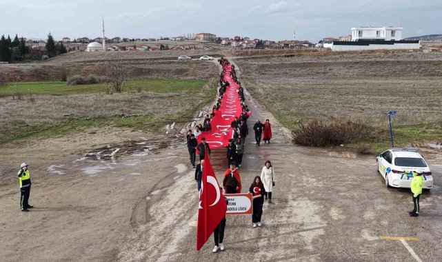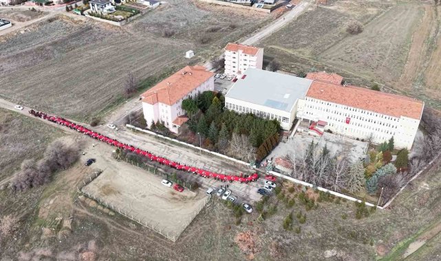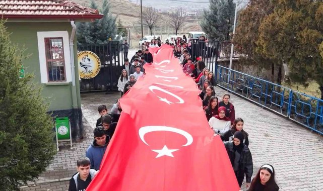 Kırıkkale'de lise öğrencileri, 150 metre uzunluğundaki Türk bayrağıyla okula giriş yaptı.