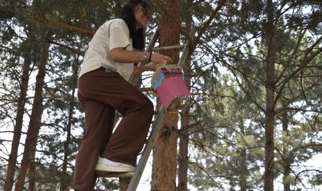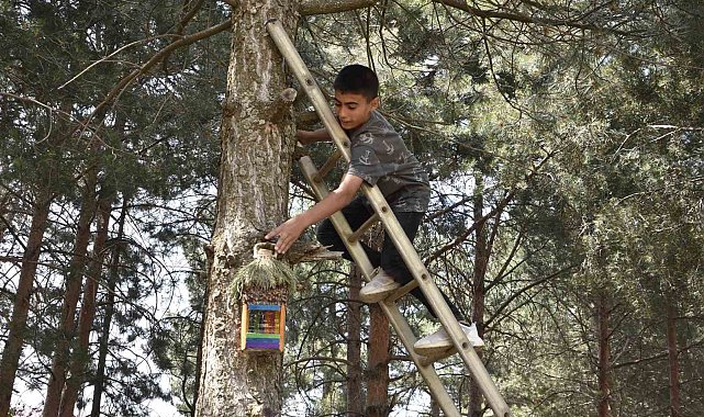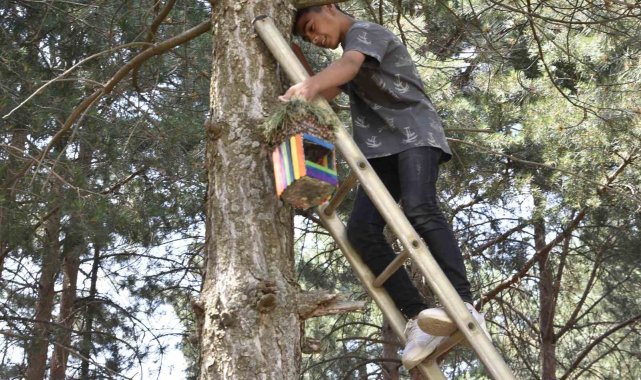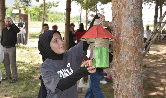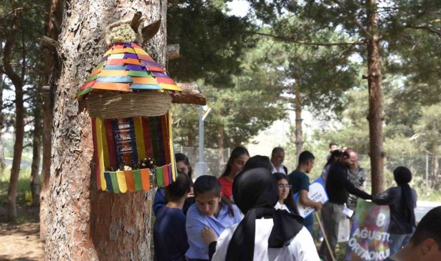 Öğrenciler yaptıkları kuş evlerini tek tek ağaçlara astı. Belediye Başkanı Nesrullah Tanğlay ise öğrencilere günün anısına küçük hediyeler verdi.