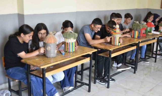 Öğrencilere fikir veren Din Kültürü ve Ahlak Bilgisi Öğretmeni Muhammed Özdağ, "2024 yılında Türkiye Yüzyılı Maarif modeline yürürlüğe soktuk. Bu kapsamda Milli Eğitim Bakanlığı, erdemli, ahlaklı, sorumlu sahibi, kendi kültürüne sahip çıkan başka kültürlere, yani dünyaya açık bireyler yetiştirmeyi hedefliyor. ÇEDES Projesi kapsamında Milli Eğitim Bakanlığı, çevresine duyarlı, değerlerine sahip çıkan öğrenciler yetiştirmeyi istiyor. Öğrencilerimiz de aynı zamanda sıfır atık projesi kapsamında etrafındaki plastik atıklardan kuşlar için yuvalar hazırlamaya başladılar. Öğrencilerimiz kuş yuvaları tasarlayarak hem ekip çalışmasını, hem çevreye duyarlı olmayı, hem sorumluluk sahibi olmayı, hem de merhametli olmayı öğrenmiş oldular" dedi.