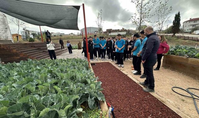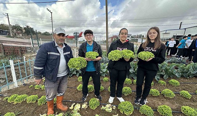 Çayırova'da lise öğrencileri belediye tarafından yeni hizmete açılan "Bahçem Çayırova" projesi kapsamında sebze hasadı yaptı.