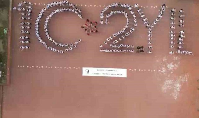 Bursa'da yüzlerce lise öğrencisi 102.yıl koreografisi oluşturdu ardından bayraklarla yürüyüş yaptı. O anlar dron ile görüntülendi.