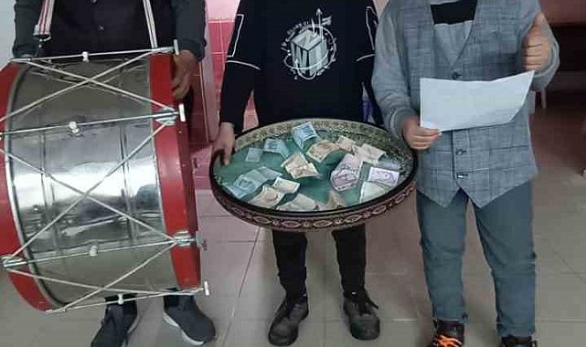 Öğrenciler davul çalıp bahşiş topladı