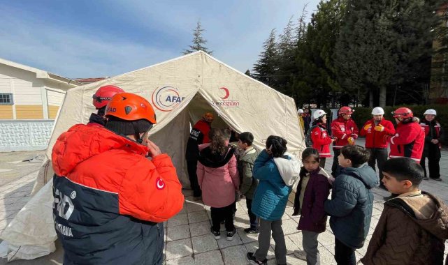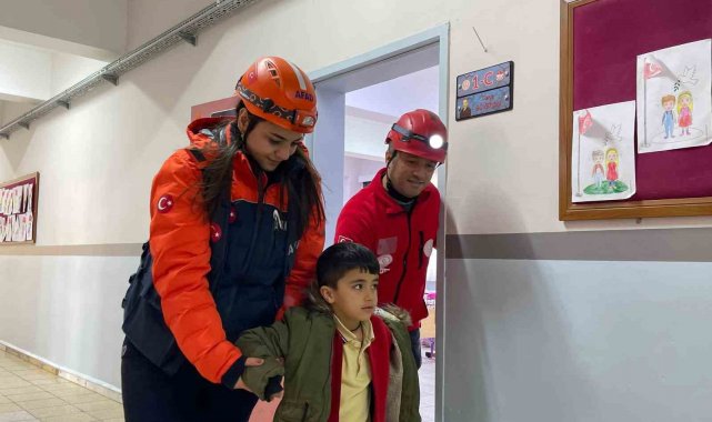 Öğrenciler depremde ne yapmaları gerektiğini tatbikatta öğrendi