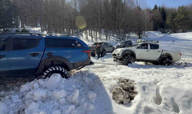 Düzce'de Üniversite öğrencileri off-road araçlarıyla sezonun son karını görmek için dağlara çıktı. Gün boyu yaylaları gezen öğrenciler 1 metre kar kalınlığında doyasıya eğlendi.