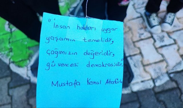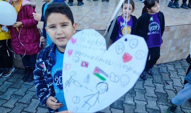 Öğrencilerden Melek Akdağ, "İnsanların haklarıyla ilgili balonları havaya atacağız. Çok mutluyum. Filistin'deki çocukların hakları için balonları atacağız" derken Zeynep Coşkun, balona iliştirdiği nota, "Yaşama hakkı en temel haktır" yazdığını söyledi.