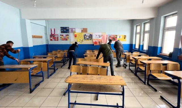 Hakkari'nin Yüksekova ilçesinde sömestr tatilinin sona ermesine sayılı günler kala, ilçe genelindeki okullarda ve öğrenci pansiyonlarında kapsamlı temizlik ve dezenfekte çalışması başlatıldı.