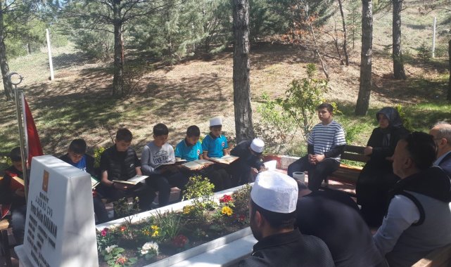 Çorum'un Sungurlu ilçesinde öğrenciler, helikopter kazasında şehit düşen Jandarma Astsubay Kıdemli Çavuş Yavuz Selim Karaman'ı dualarla andı.