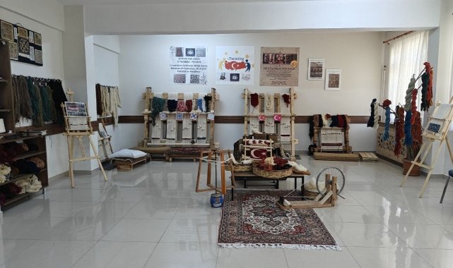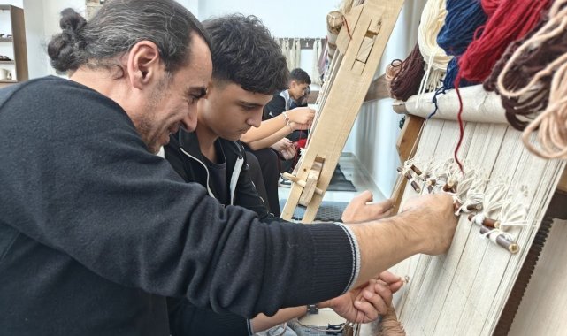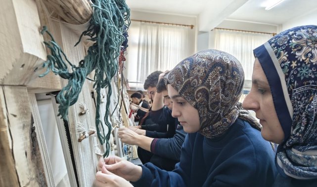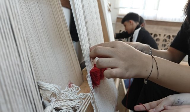 Kayseri'nin Bünyan ilçesinde bulunan Bünyan Fen Lisesi'nde açılan halı dokuma atölyesinde öğrenciler unutulmaya yüz tutmuş Bünyan halısı dokumayı öğreniyor.