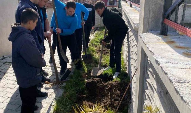 Öğrenciler jandarma karakolunu ziyaret ederek fidan dikti