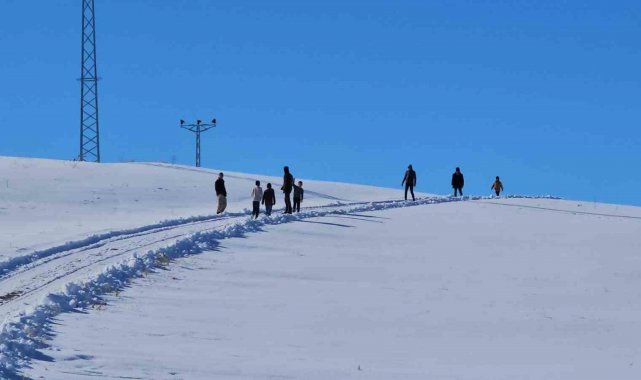 Öğrenciler sömestr tatilinde kızakla kayarak eğleniyor