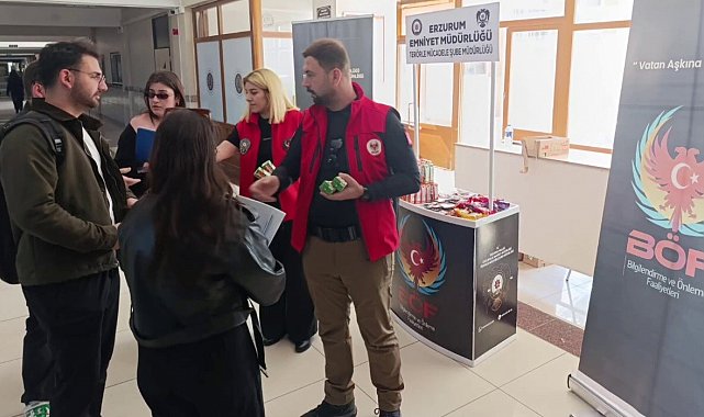 Terörle Mücadele Şube Müdürlüğü Bilgilendirme ve Önleme Faaliyetleri Büro Amirliği ekiplerince terör örgütlerince eleman temin edilmesinin engellenmesi, terör konusunda farkındalık oluşturulması, şiddete varan aşırılıkların önlenmesi, gençlerimizin milli ve manevi duygularının pekiştirilmesi, devletimize ve milletimize olan bağlılıklarının artırılması, milli birlik ve beraberlik duygularının pekiştirilmesi amacıyla "El Ele Güvenli Geleceğe" ve "Gençlik Güvenli Gelecek" projeleri kapsamında; Atatürk Üniversitesi Mühendislik Fakültesi'nde bilgilendirme standı açıldı. Öğrencilere broşür, kitap ayracı, kek ve meyve suyu ikramlarında bulunulurken Fakülte içerisindeki konferans salonunda toplamda 800 öğrenciye bilgilendirme sunumu yapıldı.