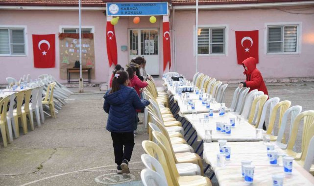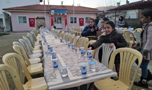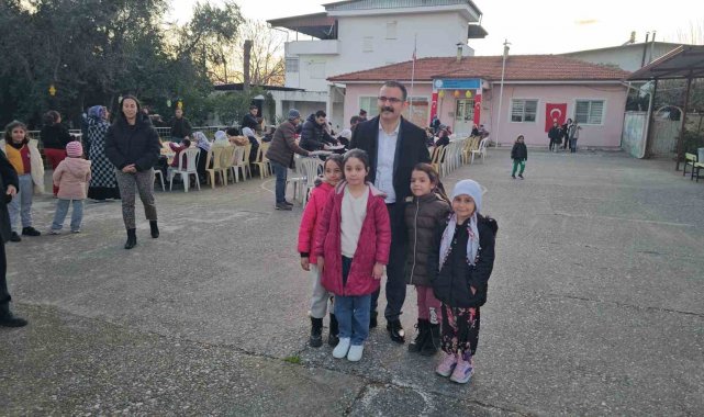 Aydın'da anasınıfı ile birlikte toplamda 3 sınıfı bulunan Sultanhisar Kabaca İlkokulu'nda eğitim gören 27 öğrenci, öğretmenlerinden öğrendikleri Ramazan ayı ve oruç tutmanın maneviyatını yaşamak için öğretmen ve velilerine iftar yemeği verdi.