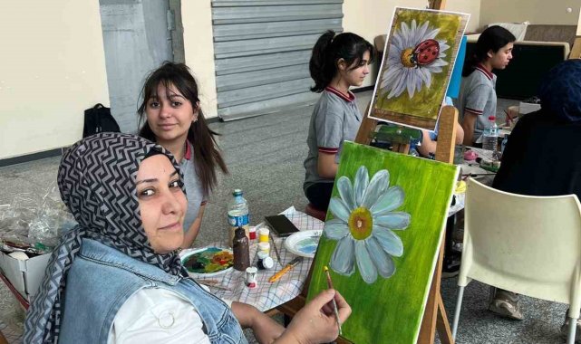 Manisa'nın Yunusemre ilçesindeki Şehit Ömer Halisdemir Ortaokulu Görsel Sanatlar Öğretmeni Yasemin Çelik ve resim kursu öğrencilerinden okul-öğrenci-veli iletişimini güçlendirmek adına 'Ailemle birlikte resim yapıyorum' etkinliği düzenlendi. Çocuklarının yönlendirmeleriyle resimler yapan veliler öğrencilik yıllarına dönerken keyifli etkinlik için okul yönetimine teşekkür etti.