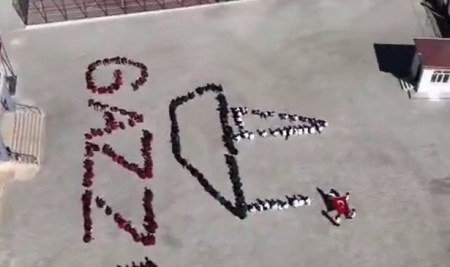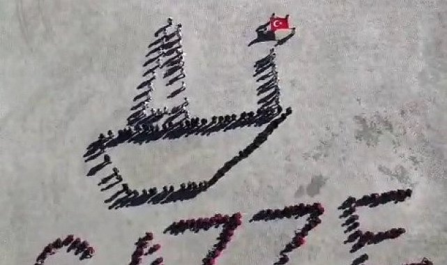 Adıyaman'ın Gölbaşı ilçesine bağlı Belören beldesinde okul öğrencileri, bedenleriyle 'Gazze' yazıp Sumud Gemisinin koreografi'sini yaptı.