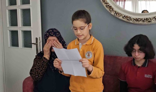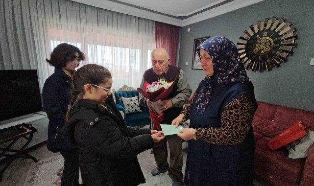 Öğrencilerin yazdığı 380 mektuptan bazıları, şehit ailelerinin evleri ziyaret edilerek bizzat verildi.
