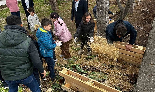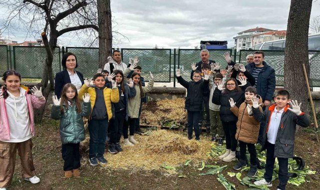 Bilecik Çevre, Şehircilik ve İklim Değişikliği İl Müdürü Engin Öztürk, minik öğrencilere atık gıdalardan kompost ve gübre yapımını öğretti.