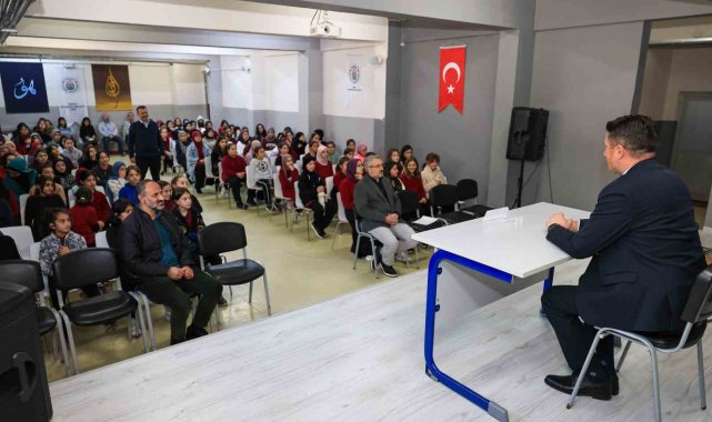 Sakallıoğlu, "Su yalnızca tüketilen bir kaynak değil, yaşamın devamlılığını sağlayan en kıymetli değerdir. Biz bu değeri geleceğe en sağlıklı haliyle taşımak ve şehrimizin yarınlarına yeni kaynaklar bırakmak için çalışıyoruz. Evde, okulda veya sosyal yaşantınızın her anında suyun boşa akıp gitmesine izin vermemelisiniz. Bugün bizi buraya davet ederek su konusundaki hassasiyetinizi bizlere göstermiş oldunuz. Her birinize ayrı ayrı teşekkür eder, eğitim hayatınızda başarılar dilerim" diye konuştu. Okul yönetimi ise söyleşide konuşmacı olarak yer alan Genel Müdür Sakallıoğlu adına, 'Bir Ağacım Var' projesine zeytin ağacı bağışladı.