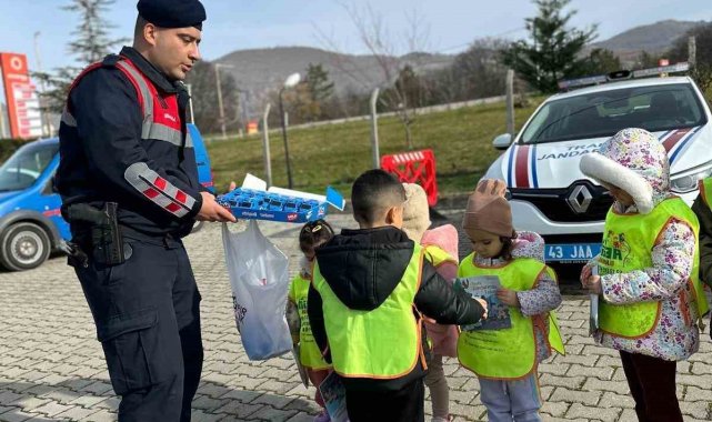 Kütahya'nın Hisar Anaokulu'nda eğitim gören 20 minik öğrenci, Simav İlçe Jandarma Komutanlığı'nı ziyaret etti.