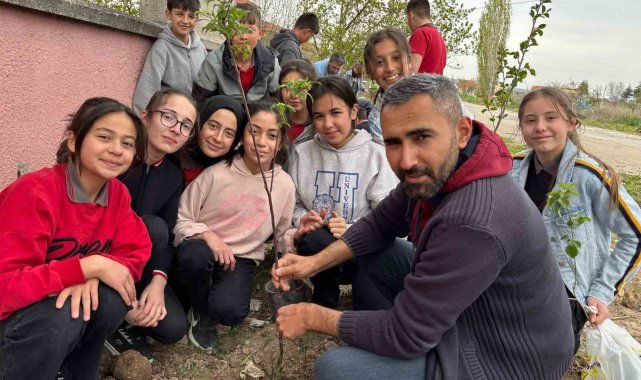 Öğretmen ve öğrenciler 100 fidanı toprakla buluşturdu