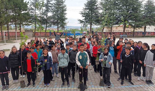 Afyonkarahisar'ın Şuhut ilçesinde Atatürk Ortaokulu öğretmen, veli ve öğrencileri 100 fidanı toprakla buluşturdu.