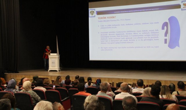Niğde Belediyesi Kültür Merkezi'nde düzenlenen 'Gençlik Sizin Eseriniz' isimli proje kapsamında düzenlenen konferansta, Niğde'nin sosyoekonomik yapısı, bölgede mevcut terör risk ve tehditleri, terör, radikalizm ve radikalleşme süreçleri ele alındı. Ayrıca, terör örgütlerinin eleman kazanma yöntemleri ve bu noktada öğretmenlerden beklentiler detaylı şekilde aktarıldı.