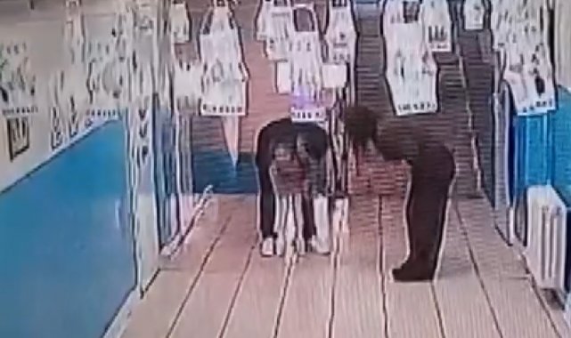 O anlar ise okulun güvenlik kameralarına yansıdı.