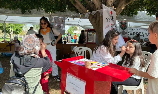 Adana'da faaliyet gösteren Ogün Abi Derneği, Portakal Çiçeği Karnavalı'nda stant açarak çocuklara yüz boyama yapıp oyunlar oynatıyor.