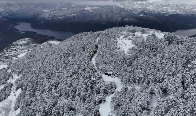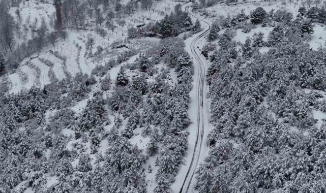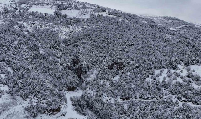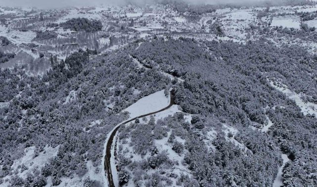 Çorum'un Oğuzlar ilçesinde etkili olan kar yağışı, doğayı beyaza bürüyerek görsel bir şölen sundu. Özellikle yüksek kesimlerde etkisini artıran kar, Tekke Yaylası ve çevresindeki kıvrımlı yolları adeta bir masal diyarına dönüştürdü. Dün sabah saatlerinde yağan kar, Obruk Barajı ve çevresindeki doğal alanları da göz alıcı bir güzelliğe kavuşturdu. Ceviziyle tanınan Oğuzlar, son yıllarda doğa sporlarına ilgi duyan ziyaretçilerin de uğrak noktası haline geldi. Tekke Yaylası'nda karla kaplanan ceviz ağaçları ve heybetli dağ manzaraları, fotoğraf tutkunları ve doğaseverler için büyüleyici kareler sundu. Bölgedeki kış manzaraları dron ile havadan görüntülendi.