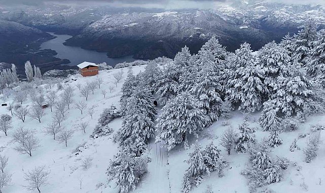 Çorum'un Oğuzlar ilçesinde etkili olan kar yağışı, Tekke Yaylası ve Obruk Barajı çevresini beyaza bürüyerek doğa tutkunlarına görsel bir şölen sundu.