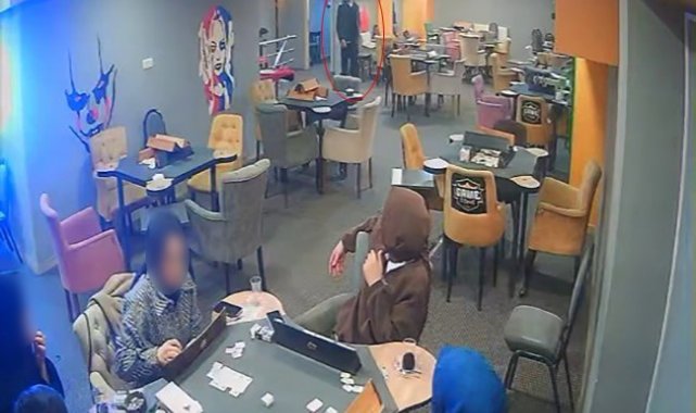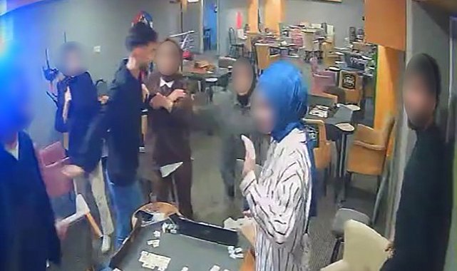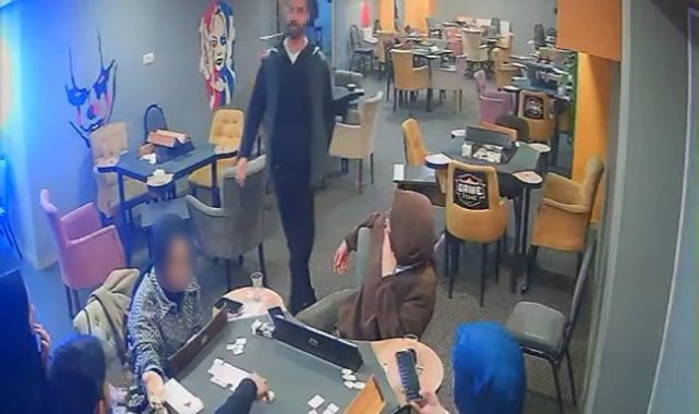 Kameralara yansıyan görüntülerde; oyun salonuna giren adamın okey oynayan ve içlerinde kadınların da olduğu gençlere doğru yürüdüğü görüldü. Önce tehditler savuran ve saldıran adamın daha sonra belindeki sallama bıçağını çıkararak masadakilere doğru savurması bir anda hareketliliğe neden oldu. Okey masasındaki kızların saldırgana engel olmak için adeta gövdelerini siper etmesi ise gözlerden kaçmadı. Bir süre devam eden arbedenin ardından bıçakla gelen adamın arkadaşıyla salonu terk ettiği ve gençlerin korku içinde olduğu görüldü.