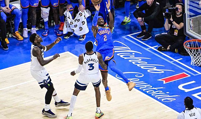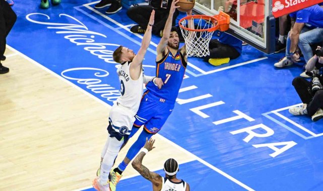 NBA'de heyecan tek maçla devam etti. Batı Konferansı final serisinde Oklahoma City Thunder, evinde karşılaştığı Minnesota Timberwolves'u 118-103'lük skorla yendi ve 2-0 yaptı. Oklahoma'da Shai Gilgeous Alexander 38 sayı, 8 asist ön plana çıkarken, Jalen Williams da 26 sayı, 10 ribaund ile double double yaptı. Minnesota'da ise Anthony Edwards 32 sayı, 9 ribaund, Jaden McDaniels da 22 sayıyla müsabakayı tamamladı.