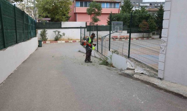 Okul bahçelerinde ot biçme çalışması yapılıyor